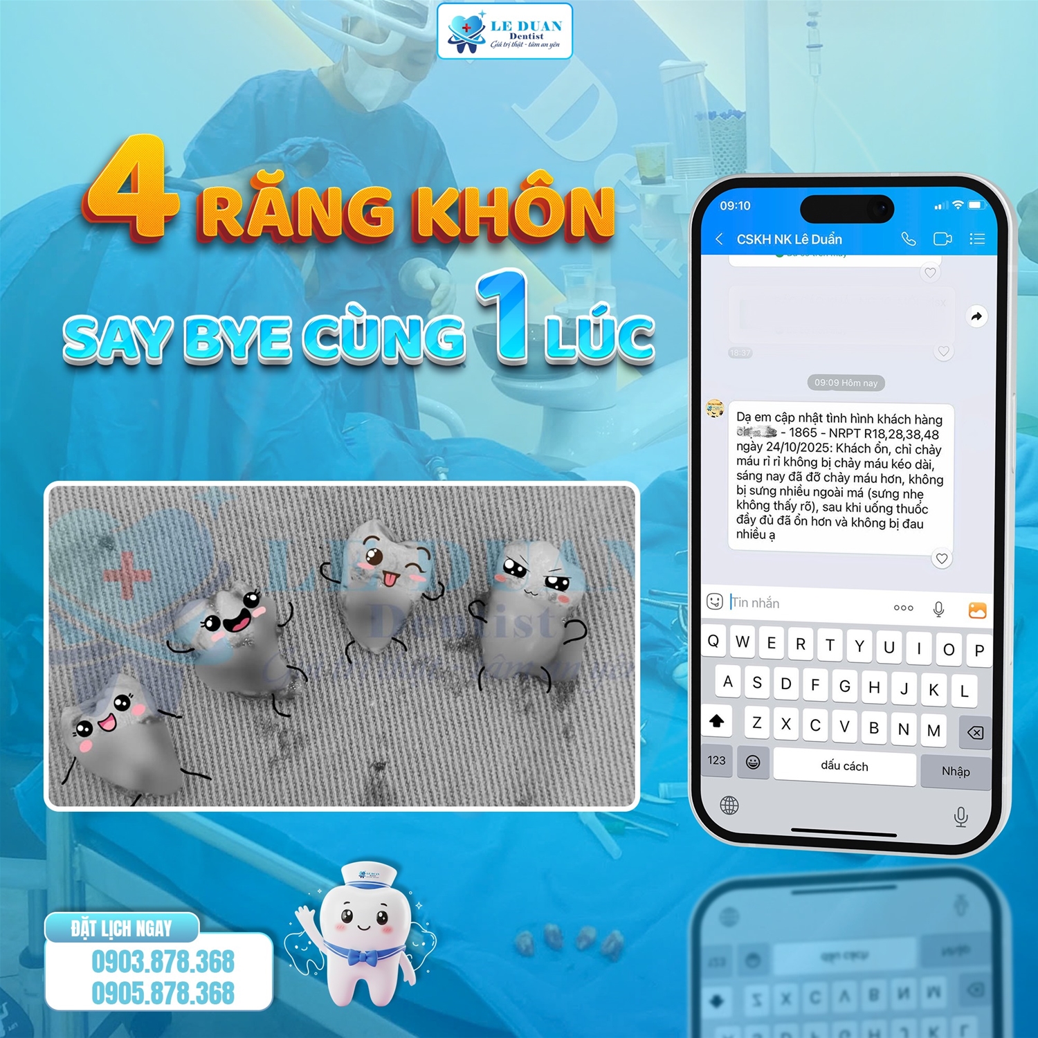 Dựa trên kinh nghiệm thực hiện nhiều ca răng khôn từ đơn giản đến mọc lệch/ngầm phức tạp, Nha khoa Lê Duẩn tổng hợp những thông tin quan trọng giúp bạn nhận biết – phòng ngừa – xử lý an toàn khi có biến chứng xảy ra, từ đó giúp quá trình lành thương diễn ra nhanh chóng và nhẹ nhàng hơn.