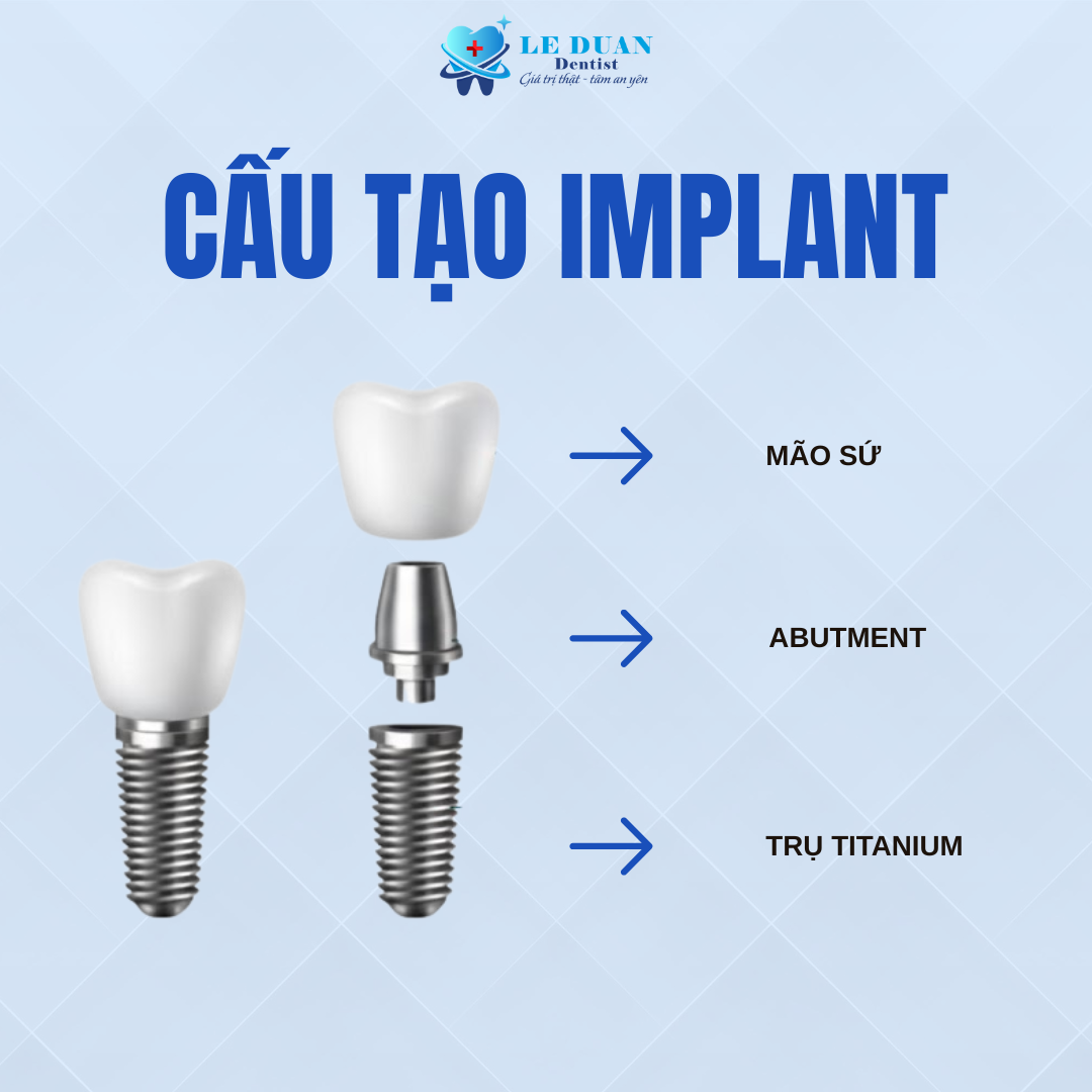 Trụ Implant (Fixture): Được cấy vào xương hàm, đóng vai trò là “chân răng” mới.