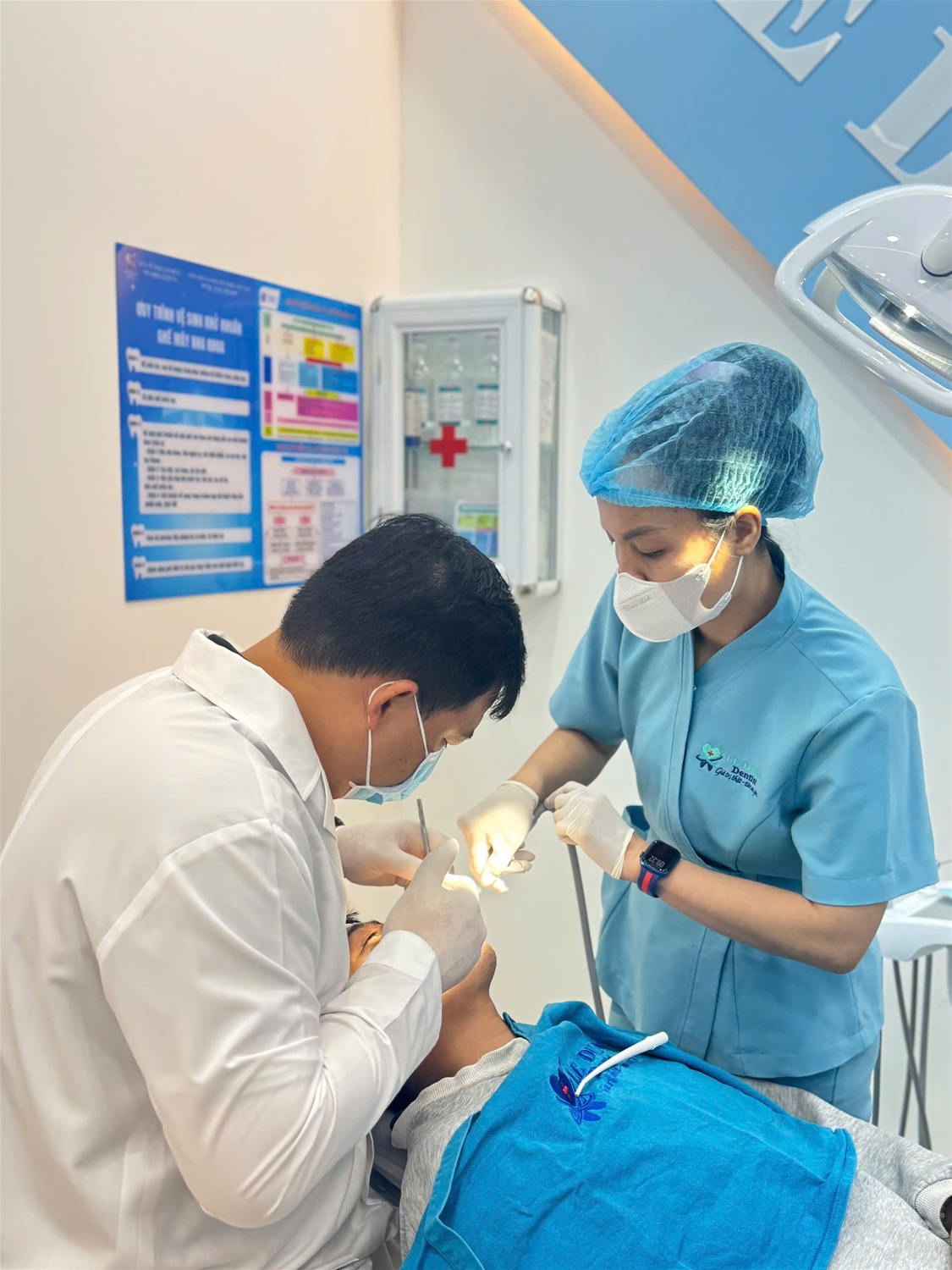 - Chuẩn bị phòng điều trị: Đảm bảo phòng khám luôn sạch sẽ, dụng cụ được sắp xếp gọn gàng, khử khuẩn đầy đủ trước và sau mỗi ca điều trị.